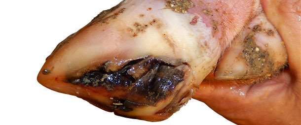 Dni 4-10: u około 25% tuczników i 15% warchlaków zaobserwowano kulawiznę. Lekarza poinformowano w dniu 9 i wizyta na fermie miała miejsce w dniu 10. Podejrzewano zakażenie Mycoplasma hyosynoviae. W czasie wizyty na fermie obserwacji poddano wszystkie grupy wiekowe świń. Lekarz stwierdził niewielkie zmiany w obrębie wału koronowego i przestrzeni międzypalcowej u większości (>90%) kulejących tuczników i niektórych warchlaków (~30%).