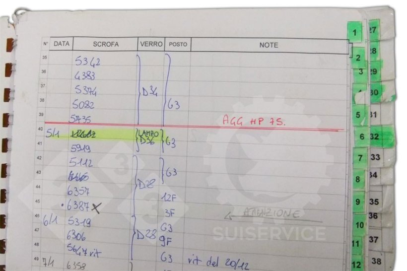 Od kilku lat SUIVET oferuje dziennik, w którym każda strona odpowiada tygodniowi w roku, w którym można zapisać wszystkie krycia wykonane w ciągu tygodnia: poprzednia strona i następna strona zawierają krycia z odpowiednich tygodni.