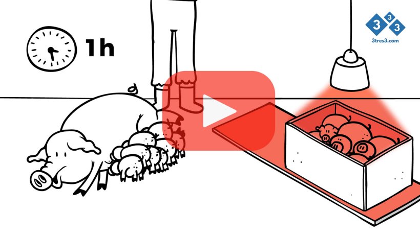 - Bierzemy najmniejsze, najbardziej mokre prosięta i zamykamy je wewnątrz skrzynki lub gniazda, zawsze ze źródłem ciepła.