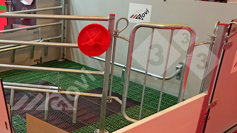 Z tego ustawienia, każdy karmnik dla prosiąt jest umieszczony na uchwycie, który został zainstalowany w każdym kojcu porodowym. Wiszące karmnik pionowo mają tę zaletę, że są znacznie łatwiejsze do czyszczenia i suszenia.