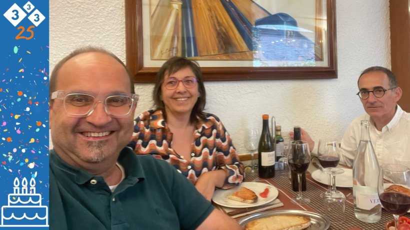 333 została założona 4 kwietnia 1998 roku. Na początku kwietnia 2023 roku, 25 lat później, spotkałam się z Enricem Marco i Miquelem Collellem, aby świętować sukces ich projektu. Poszliśmy do tej samej restauracji, w której 25 lat temu spotkaliśmy się z nieżyjącym już José Barceló. Tamto spotkanie było moim punktem wyjścia w 333, projekcie, który José, Enric i Miquel już rozpoczęli, i który miał wkrótce zostać uruchomiony.
