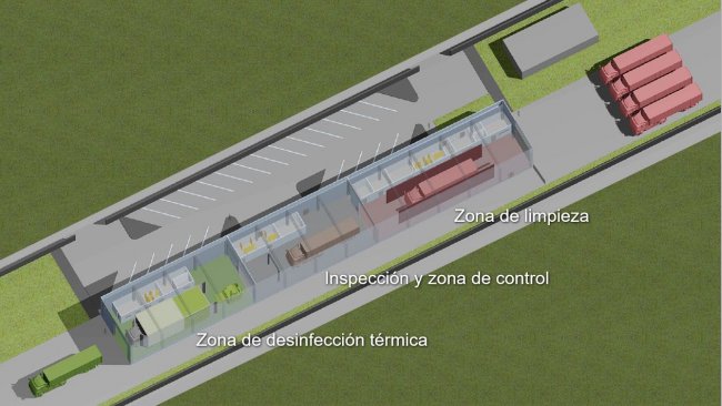 Załadunek świń do transportu może być stresujący dla świń, jak dla ich opiekunów. Nieodpowiednio zaprojektowane strefy załadunku zwiększają częstość interwencji obsługi, stres zwierząt i ludzi, wydłużają czas ładowania oraz z perspektywy bezpieczeństwa biologicznego większą szansę popełnienia błędów. W drugim filmie potencjalnie skażona ciężarówka dociera do strefy załadunku w gospodarstwie. Kierowca ciężarówki i rolnik stoją w swoich pozycjach po obu stronach brudnych / czystych granic, wskazanych pionową linią. Rolnik pozostaje po czystej stronie załadunku i kieruje świnie do ciężarówki, podczas gdy kierowca ciężarówki pozostaje po drugiej stronie i przyjmuje świnie. Dobrze zaprojektowany załadunek pozwoli świniom na łatwe poruszanie się we właściwym kierunku przy minimalnej interwencji. Zapobieganie przemieszczaniu się zwierząt i ludzi między strefami czystymi i brudnymi pozwoli uniknąć przechodzenia do drugiej strefy i zminimalizuje ryzyko przeniesienia zanieczyszczenia z ciężarówki do gospodarstwa.