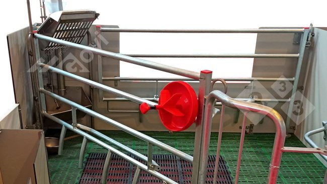 System działa bardzo dobrze, ale dwa szczegóły wymagają modyfikacji: sztywność sprężyny, która obecnie wywiera nieco zbyt duży nacisk na słomę, co utrudnia lochom jej spożywanie, oraz rozstaw siatki stojaka, który jest o 2-3 centymetry za wąski.