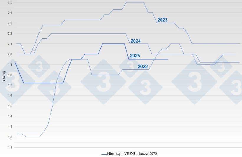 Handel prosiętami przedstawiał podobny obraz. Dostępne partie zaspokajały popyt, który nie był ani nadmierny, ani słaby. Ceny pozostały niezmienione na poziomie 61,50 euro za grupę 25-kilogramową, sygnalizując spokój u podstawy łańcucha dostaw. Tempo wzrostu w oborach chwilowo spadło w okresach upałów, ale rynek bez trudu to zaabsorbował. Miesiąc przyniósł równowagę, a nie ekscytację, ale też brak realnych obaw.