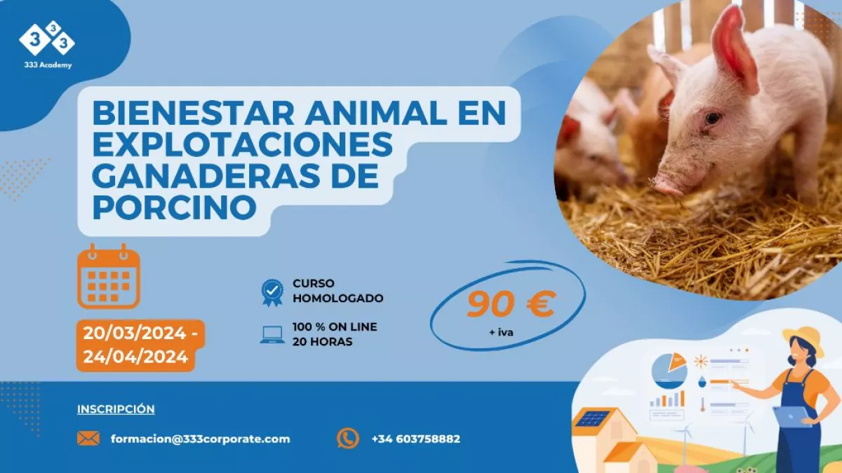 ¡No te pierdas nuestro Curso Homologado de Bienestar Animal en Explotaciones Ganaderas de Porcino!