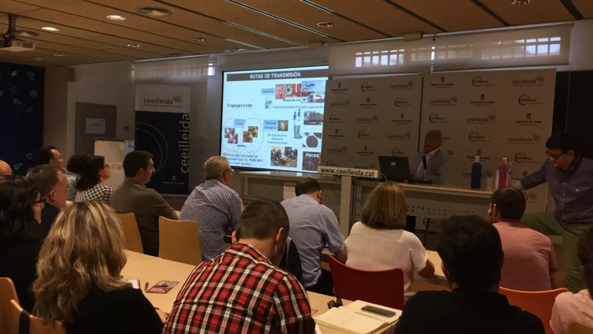 El Prof Sánchez-Vizcaíno anuncia la culminación exitosa de las investigaciones y ensayos para obtener una vacuna experimental efectiva frente a Peste Porcina Africana durante la sesión de sensibilización frente a la enfermedad que se desarrolla en el Centre Europeu d’Empreses i Innovació (@ceeilleida) organizada por GSP Lleida, el Colegio Oficial de Veterinarios de Lleida y la AVPC. Toda la información sobre PPA en: 3tres3.com/ppa