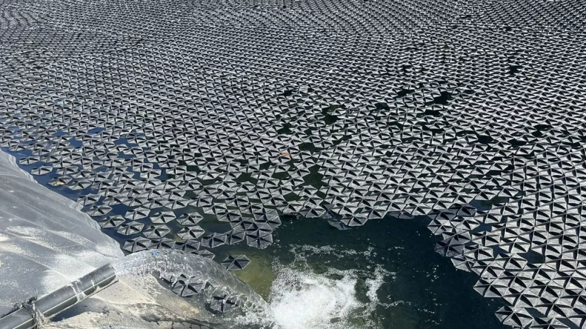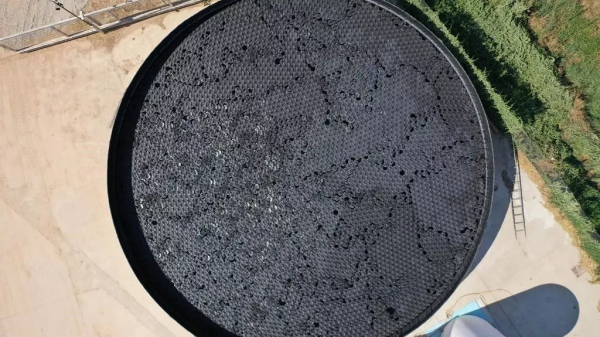 sobre la superficie de la balsa reduce la evaporación del agua de manera extraordinaria, siendo una solución fácil, eficaz  y muy recomendable para el ahorro de agua. en estos momento de severa sequía sobre todo el Estado.Además, Hexa-Cover