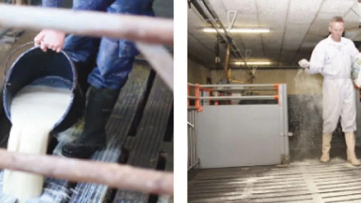 Cada vez que se saquen los animales de los corrales, el producto se puede aplicar directamente en las fosas y aclararse durante la limpieza
