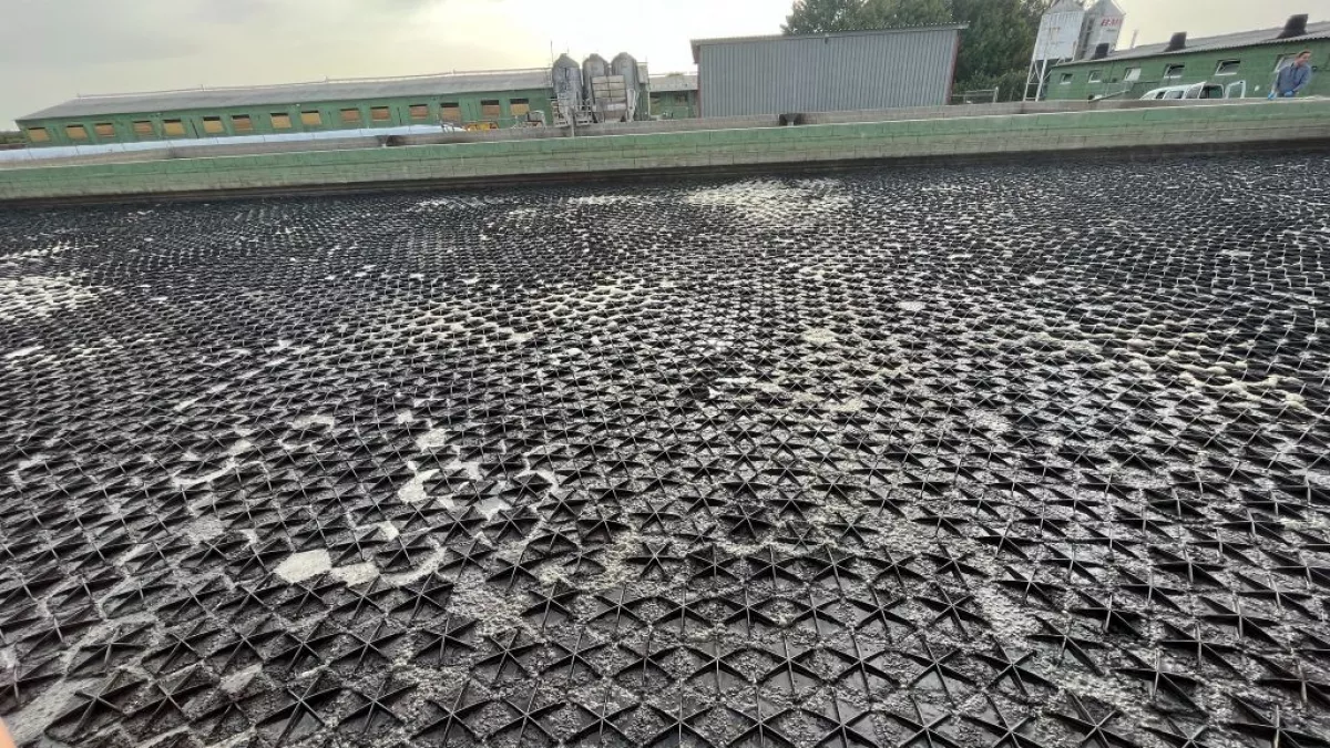 En concreto las MTD 16 incluye las placas de plástico geométricas como técnica para reducir las emisiones de amoniaco a la atmósfera procedentes del almacenamiento y de una balsa de purines.