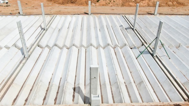 En este destete, el cliente confió en nuestro material para el equipamiento interior: slats de plástico, nidos, paneles de PVC con sus sujeciones de acero inoxidable, tolva y bebederos de inox, además de nuestra placa de hormigón prefabricado, que incorpora aislante de doble densidad y tubos mixtos (plástico + metal) para evitar sesgos y asegurar curvas de distintos diámetros.