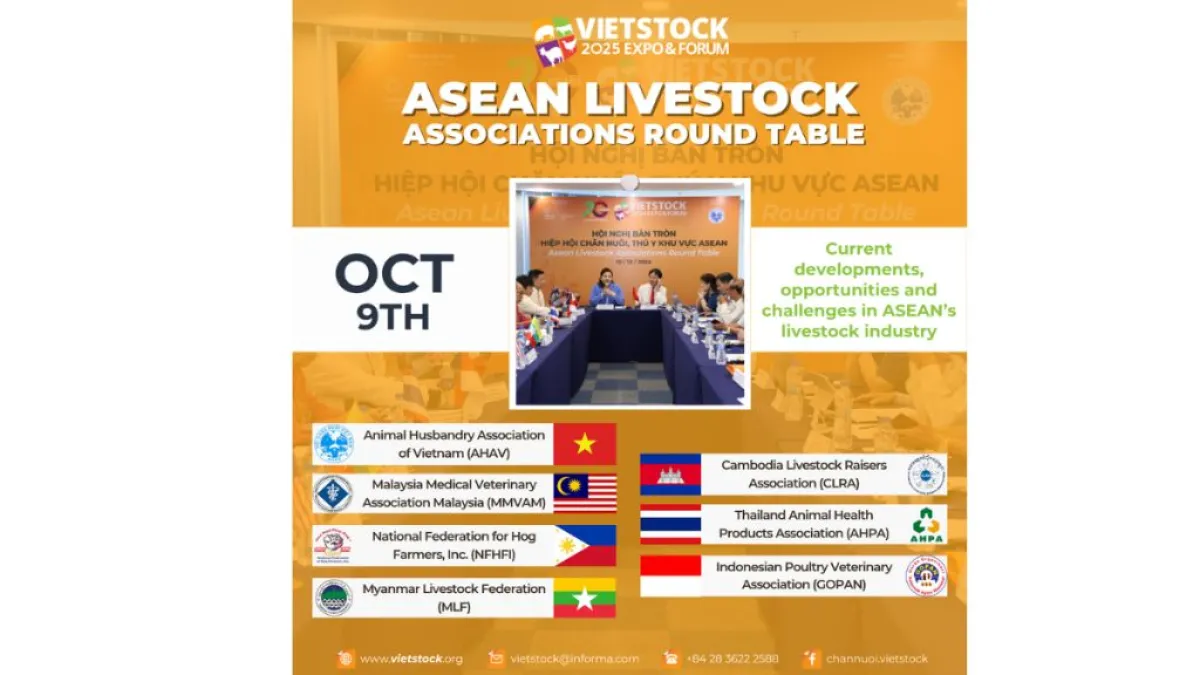 On 09/10/2025, the ASEAN Round Table will take place at Vietstock 2025. Join 7 leading livestock and veterinary associations from across ASEAN to connect, share insights, and explore opportunities shaping the region’s livestock industry.