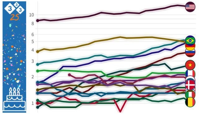 W tym roku 333 świętowało swoje 25-lecie. Spójrzmy wstecz i zobaczmy, jak branża rozwijała się w krajach będących największymi producentami w ciągu ostatnich 25 lat.
