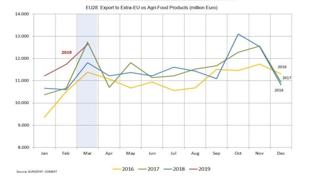Między styczniem a marcem 2019r. eksport wzrósł o 9%.