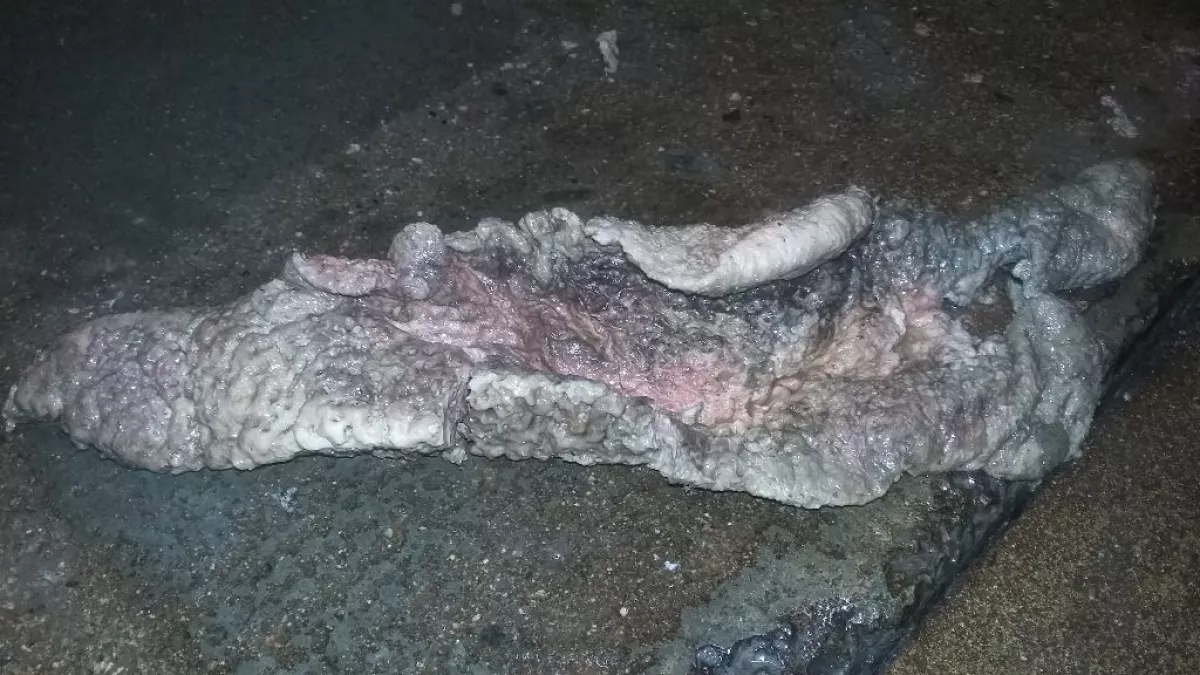 Это выпало из хряка. Думаем слизистая прямой кишки. За месяц до этого фекалии были кровянисто-шоколадного цвета. Лечили аб.