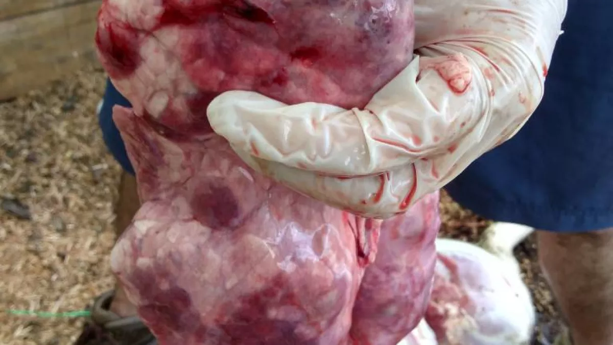 Lesión característica de APP en un cerdo de aproximadamente 12 semanas #APP