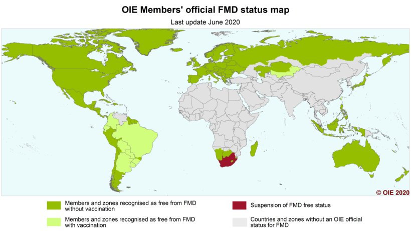 Chorwacja, Kazachstan i Malta zostały uznane za wolne od klasycznego pomoru świń. Jedna strefa w Chinese Taipei (Tajlandia) została uznana za wolną od pryszczycy, gdzie nie stosuje się szczepień. Brazylia (jedna strefa) i Kolumbia (cztery strefy) również zostały uznane za wolne od pryszczycy, ale tam, gdzie praktykowane są szczepienia.