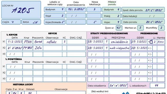 Przedstawiamy przykład karty lochy używanej do rejestrowania podstawowych danych dotyczących loch hodowlanych, które są niezbędne we wszystkich gospodarstwach, niezależnie od ich wielkości.